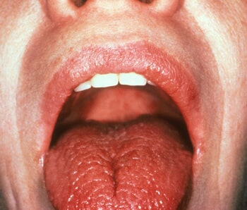- •A dry, red, raw tongue